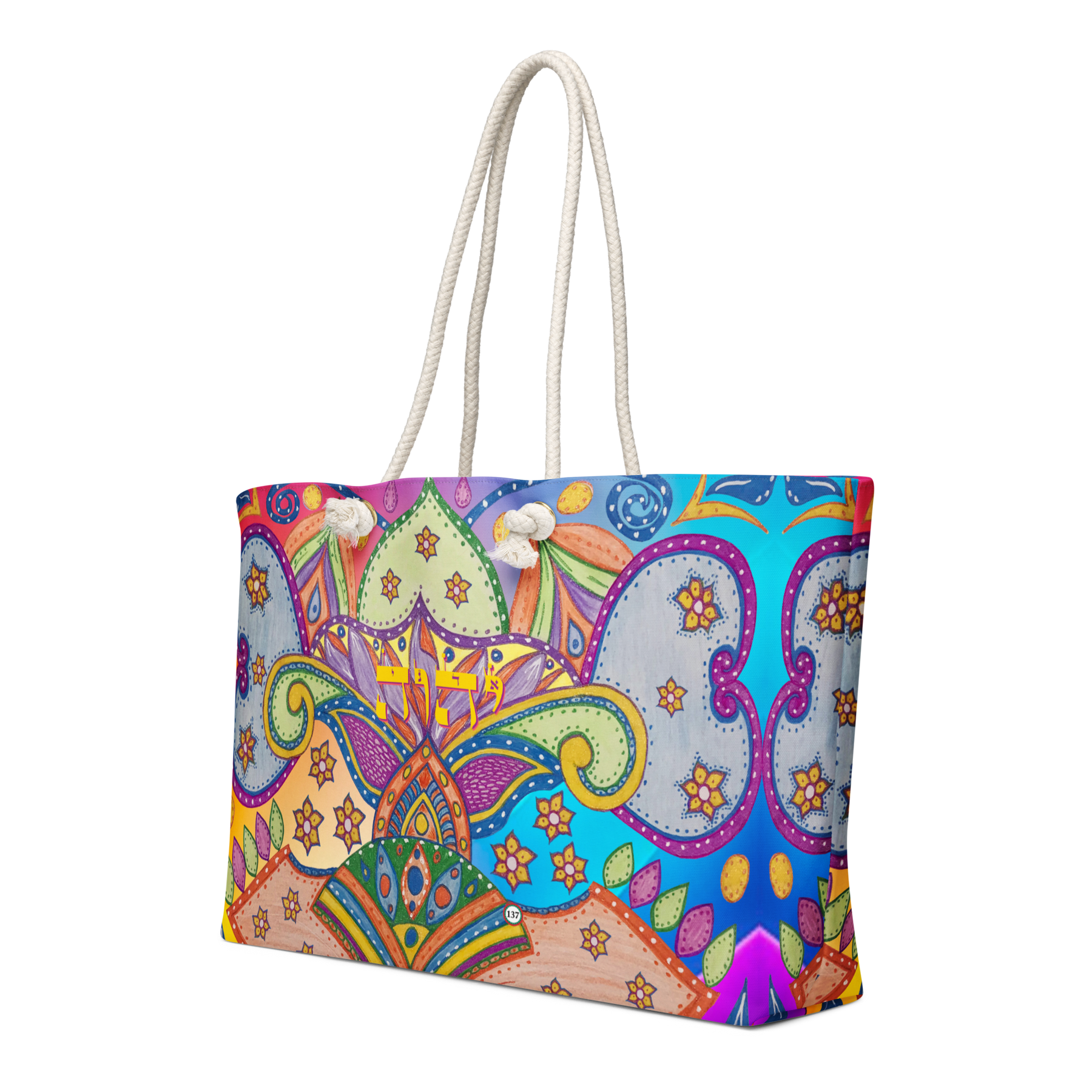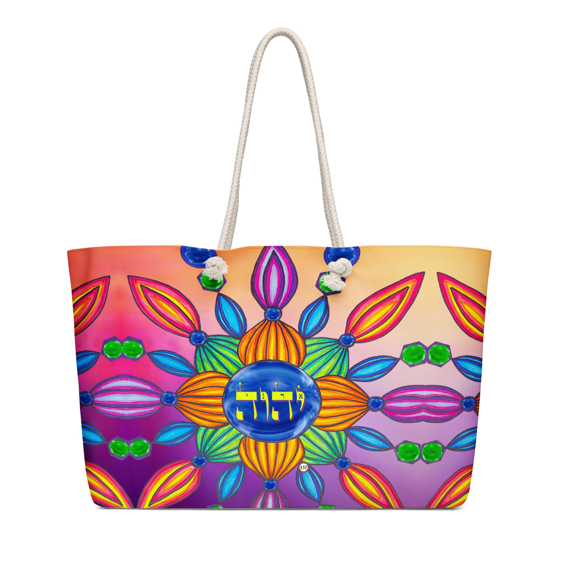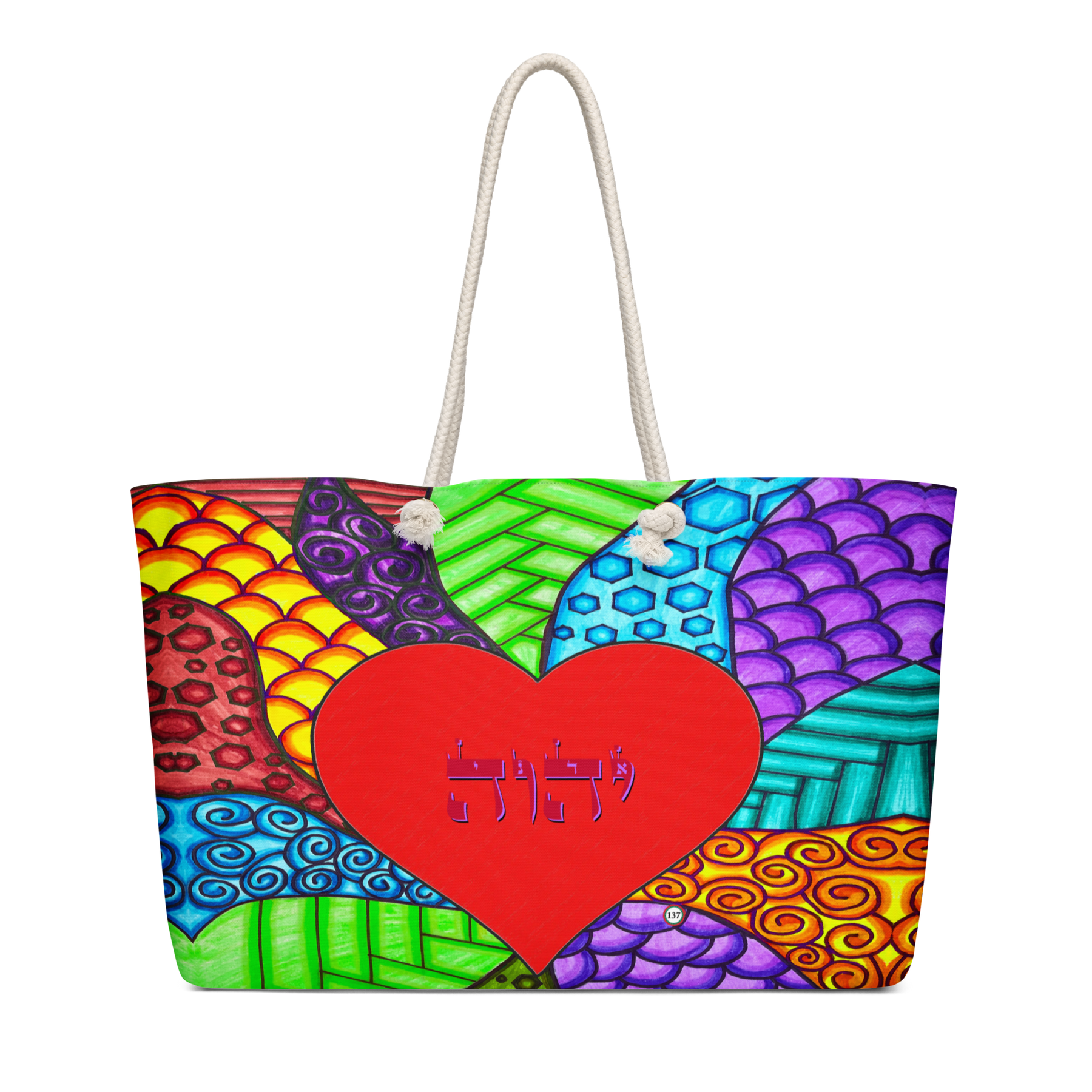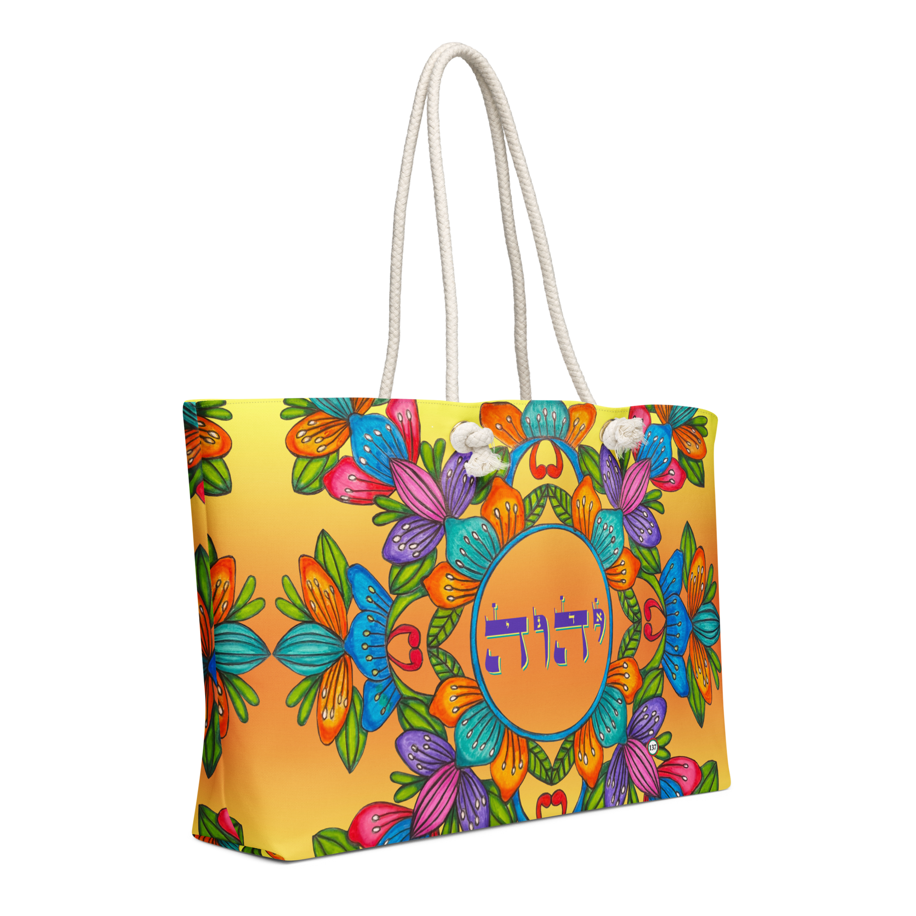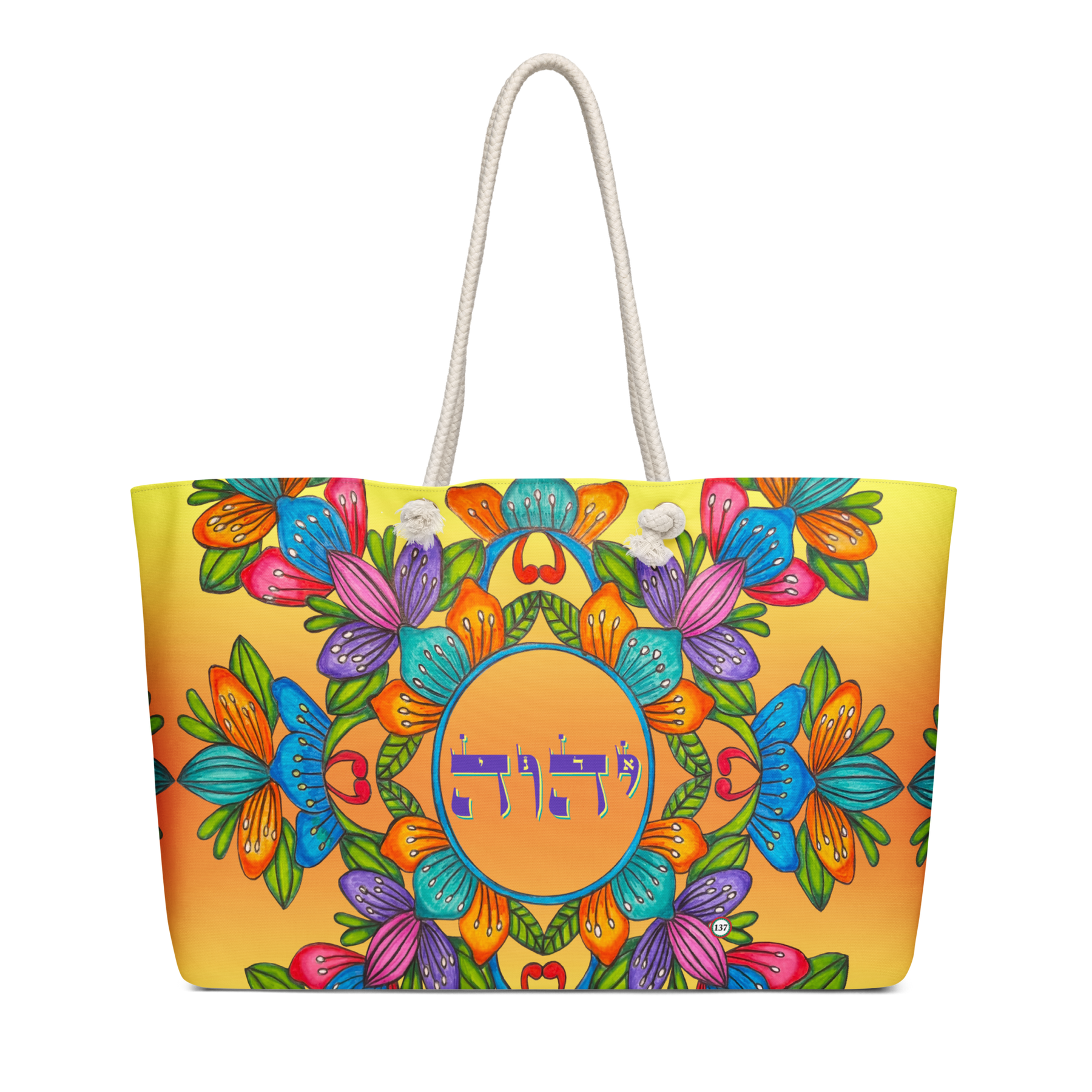 Extra Large 24 in x 13 in Canvas Tote Bag: Yud, Hey, Vav, Hey