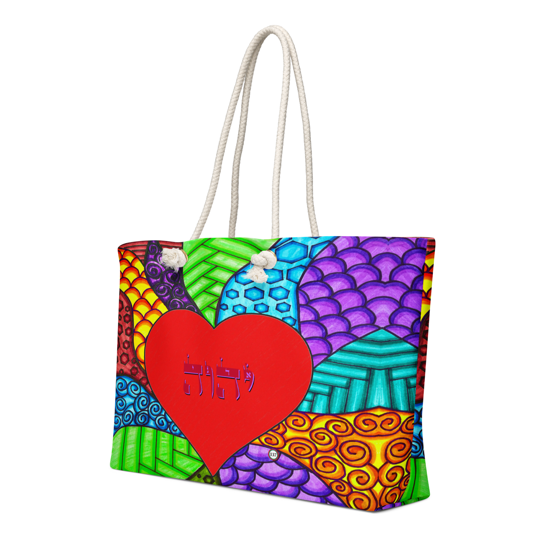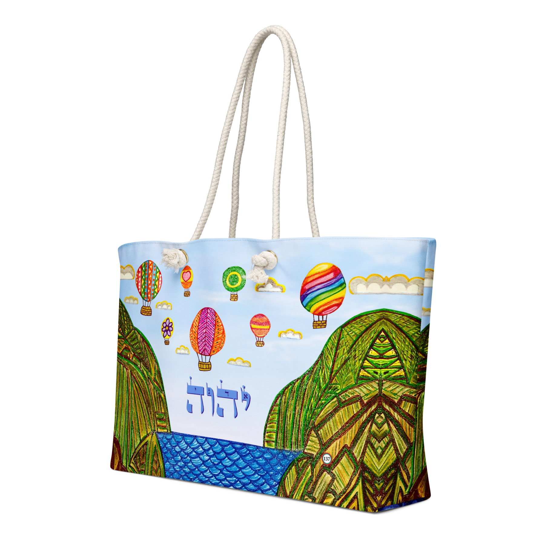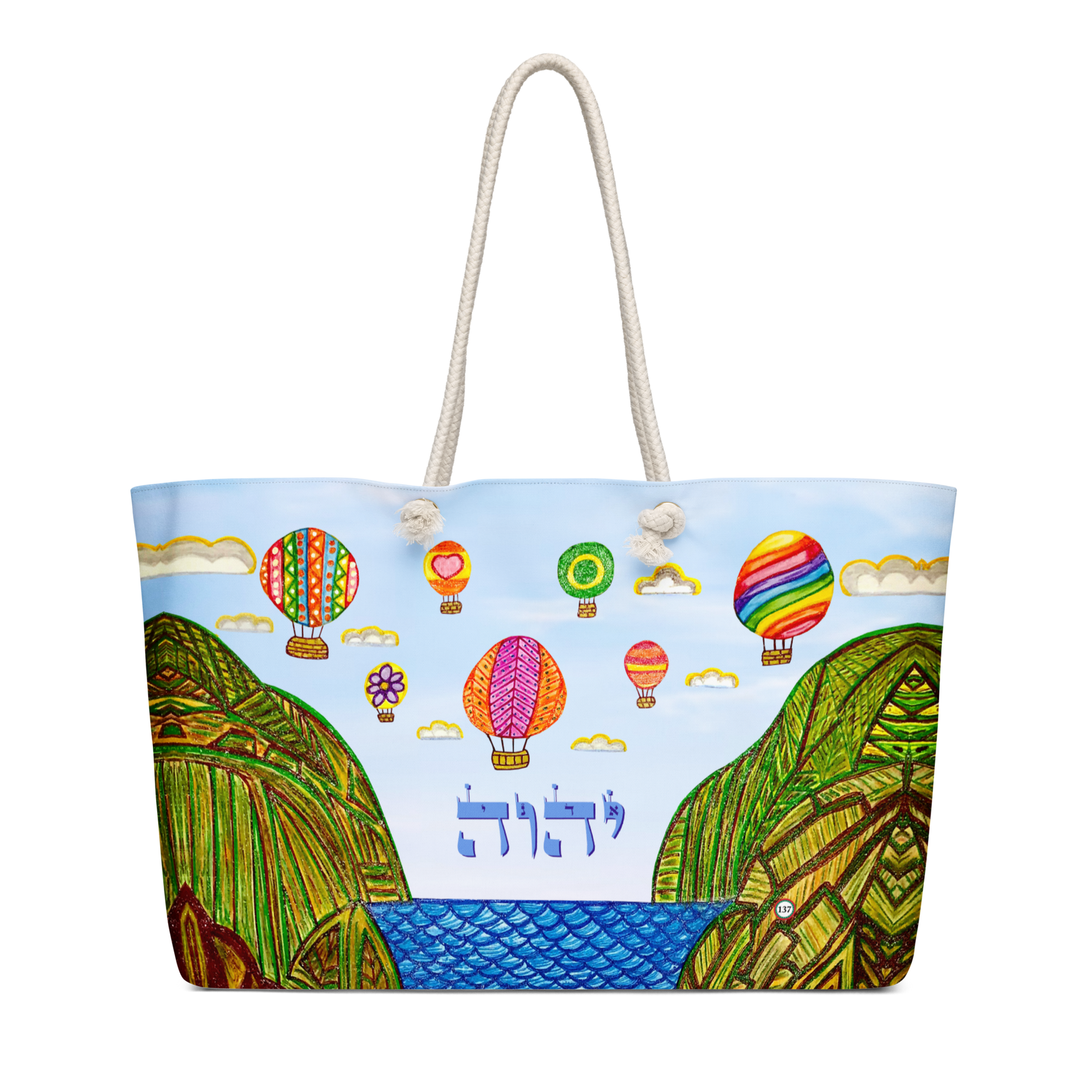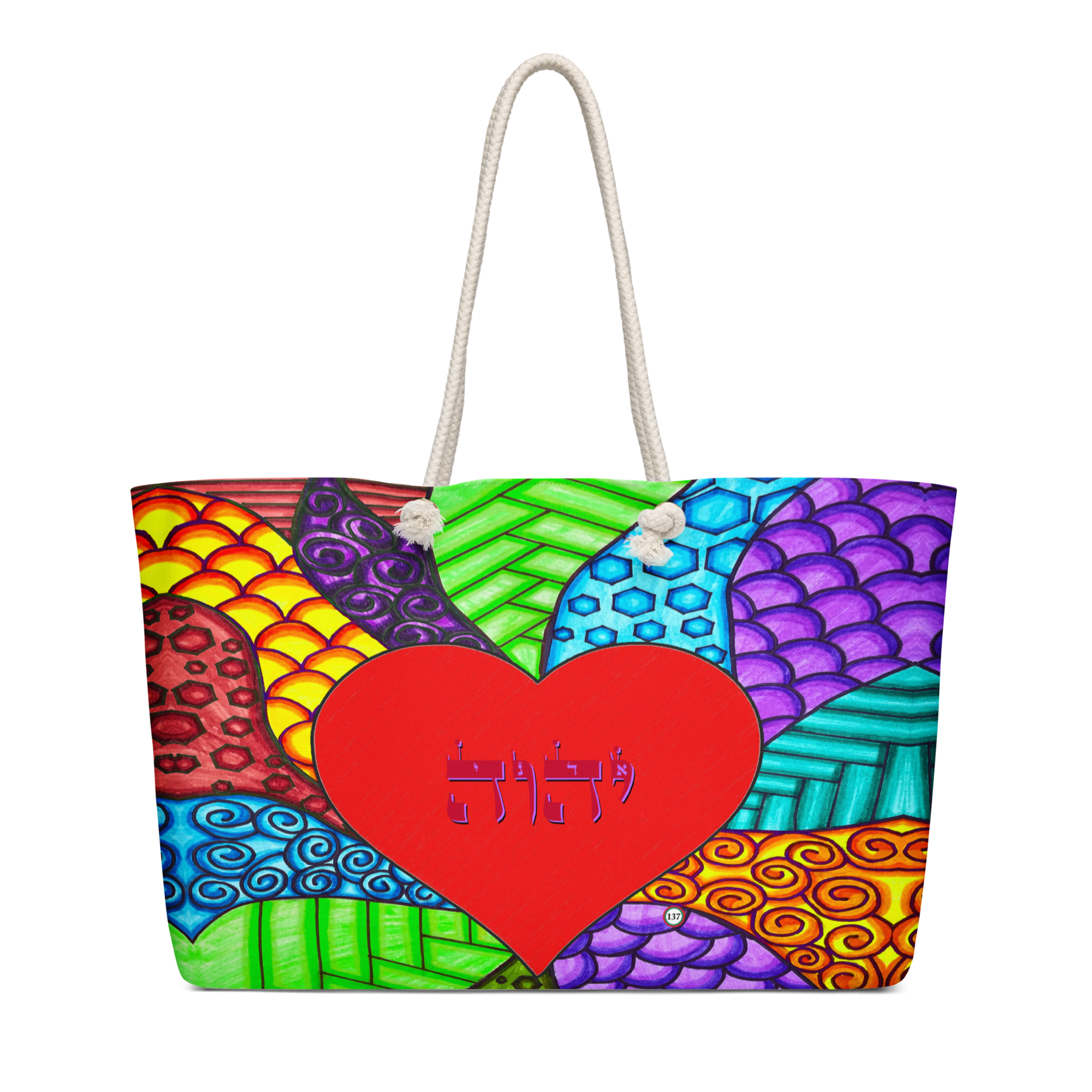 Extra Large 24 in x 13 in Canvas Tote Bag: Yud, Hey, Vav, Hey