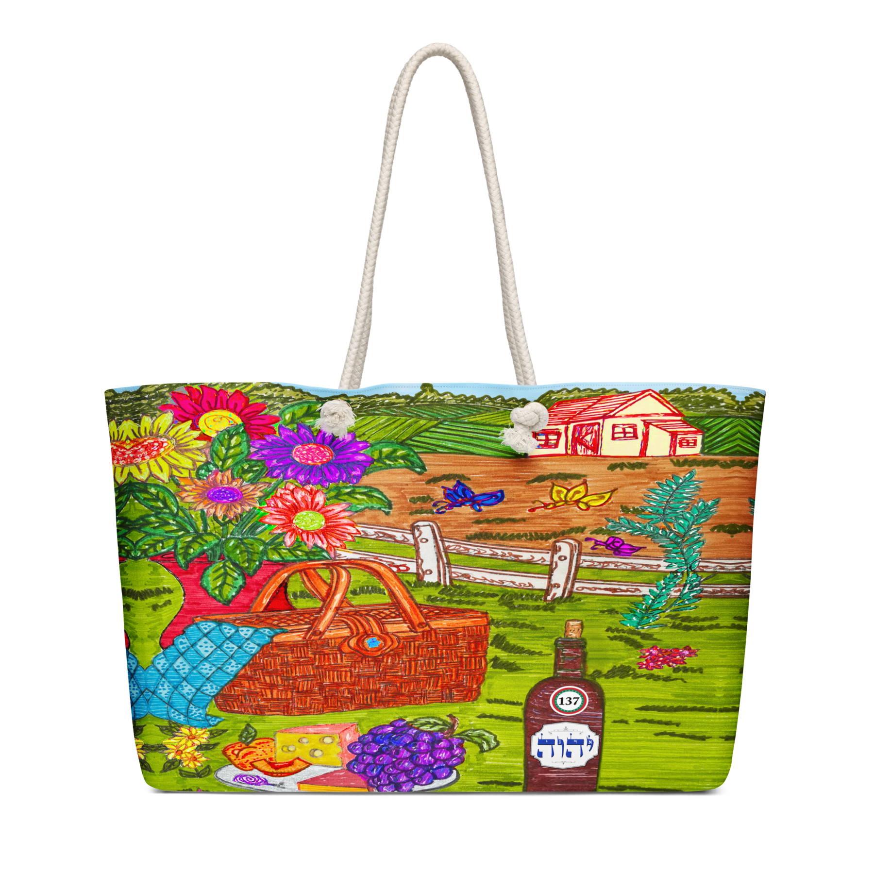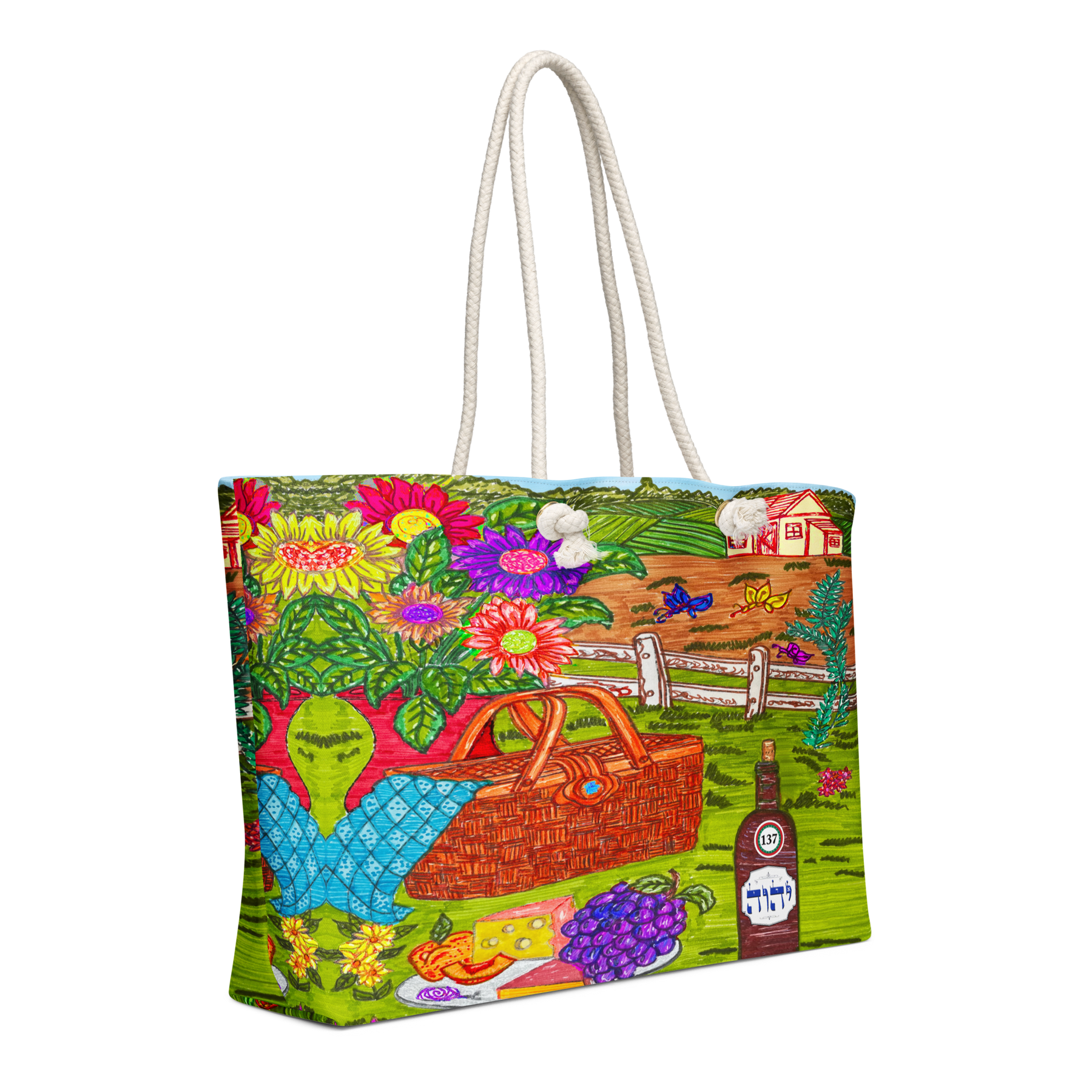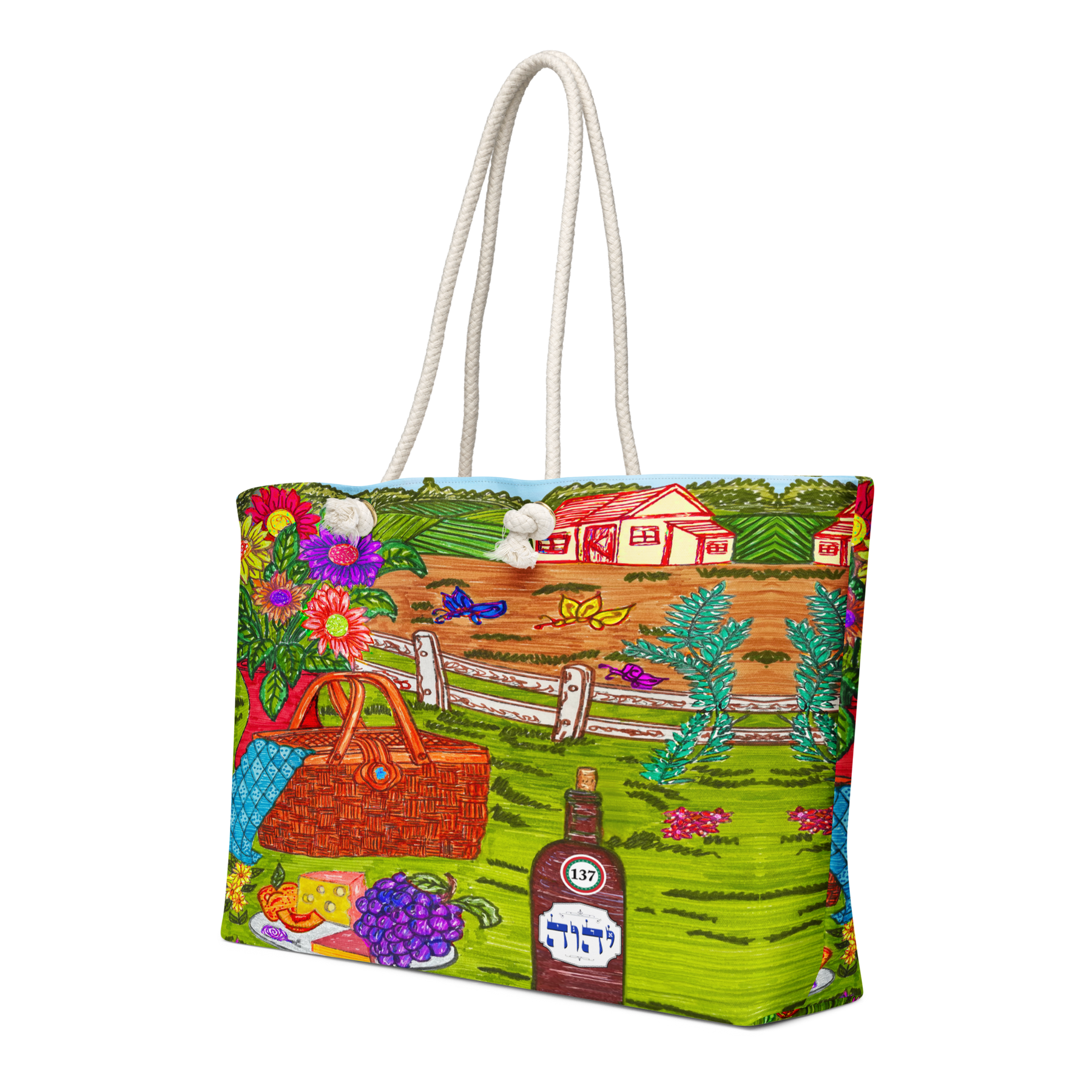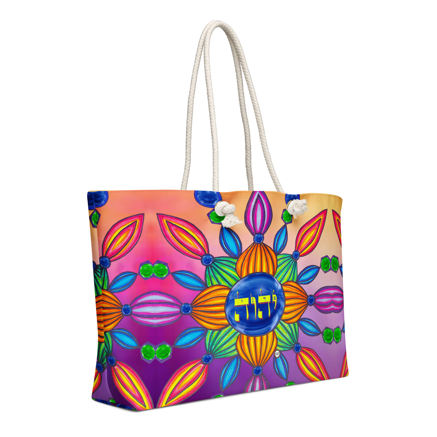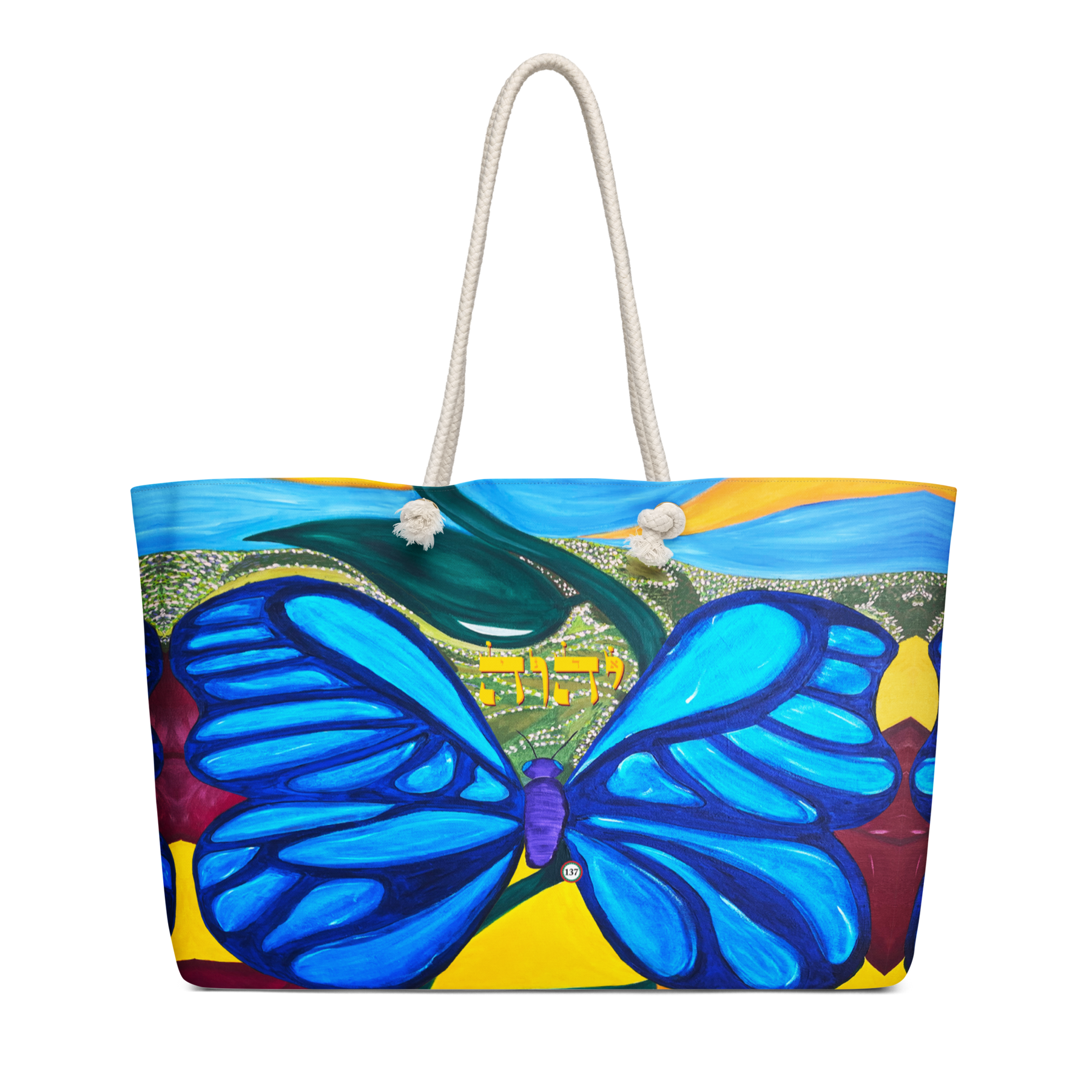 Extra Large 24 in x 13 in Canvas Tote Bag: Yud, Hey, Vav, Hey